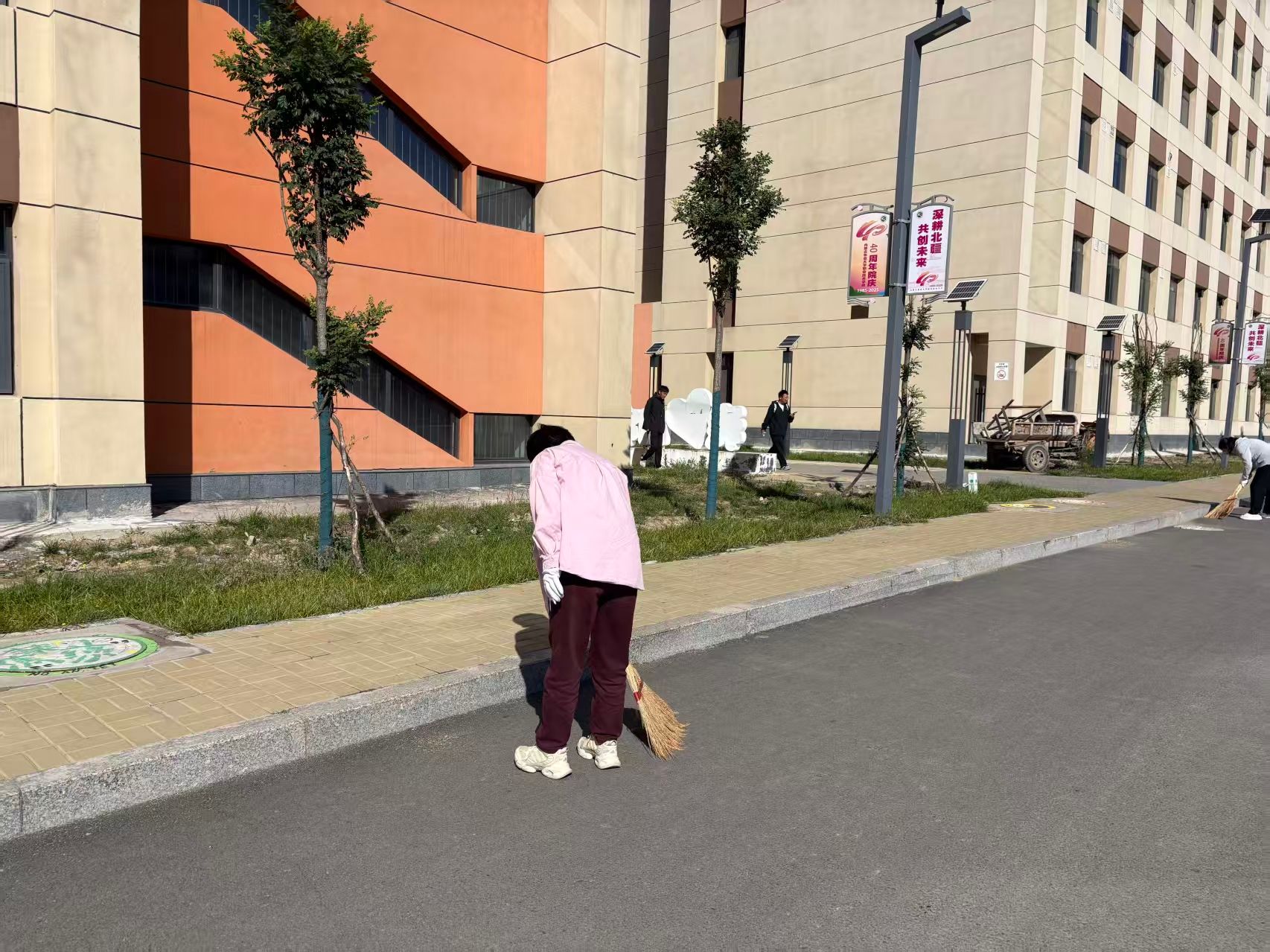 劳动过程中,大家相互配合、分工协作,有的负责清扫地面,有的负责收集清运垃圾,有的则徒手拔除绿化带内的杂草,现场呈现出一派热火朝天的劳动景象。尽管天气微凉,但每个人的脸上都洋溢着劳动的喜悦,汗水浸湿了衣衫也丝毫没有影响大家的热情。经过近两个小时的辛勤劳动,新食堂周边及家属区的环境面貌得到显著改善,地面变得干净整洁,杂物被彻底清除,整体环境焕然一新。