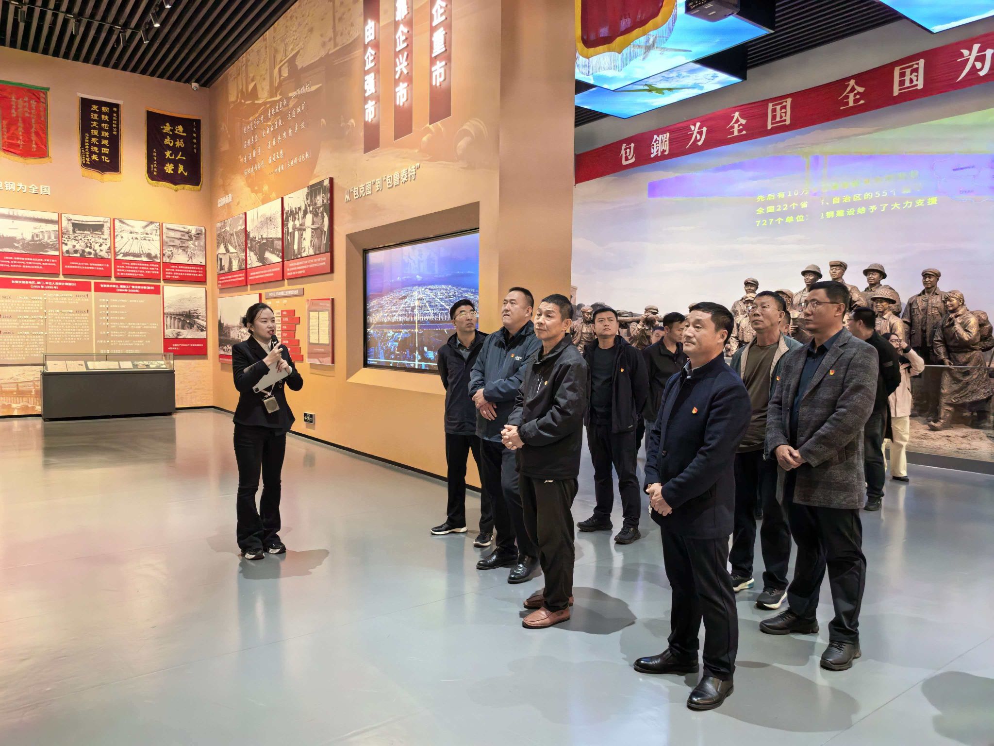 活动当日上午 9 时,党员同志们在后勤处统一集合乘车,历经 1 小时 30 分钟车程抵达包钢产业园。作为 2011 年被自治区党委宣传部命名的 “自治区级爱国主义教育基地”,包钢产业园以包钢展览馆、包钢稀土院稀土展厅、白云鄂博铁矿矿史展览馆为核心,全方位呈现工业发展历程中的红色基因。在工作人员的引导下,党员们重点参观了 2006 年 9 月正式对外开放的包钢展览馆,展馆两层空间内六大部分内容系统梳理了包钢 50 余年的发展脉络 —— 从艰苦创业的建设初期到技术突破的转型阶段,从保障国家工业需求到推动稀土产业创新,一幅幅历史图片、一组组生产数据、一件件实物展品,生动再现了 “齐心协力建包钢” 的奋斗场景,让在场党员深刻体会到老一辈建设者扎根边疆、为国奉献的崇高精神。随后,党员们走进包钢车间生产线,近距离观察现代化钢铁生产流程,直观感受传统工业与智能制造的深度融合,进一步增强了对国家工业体系建设的认同感与自豪感。